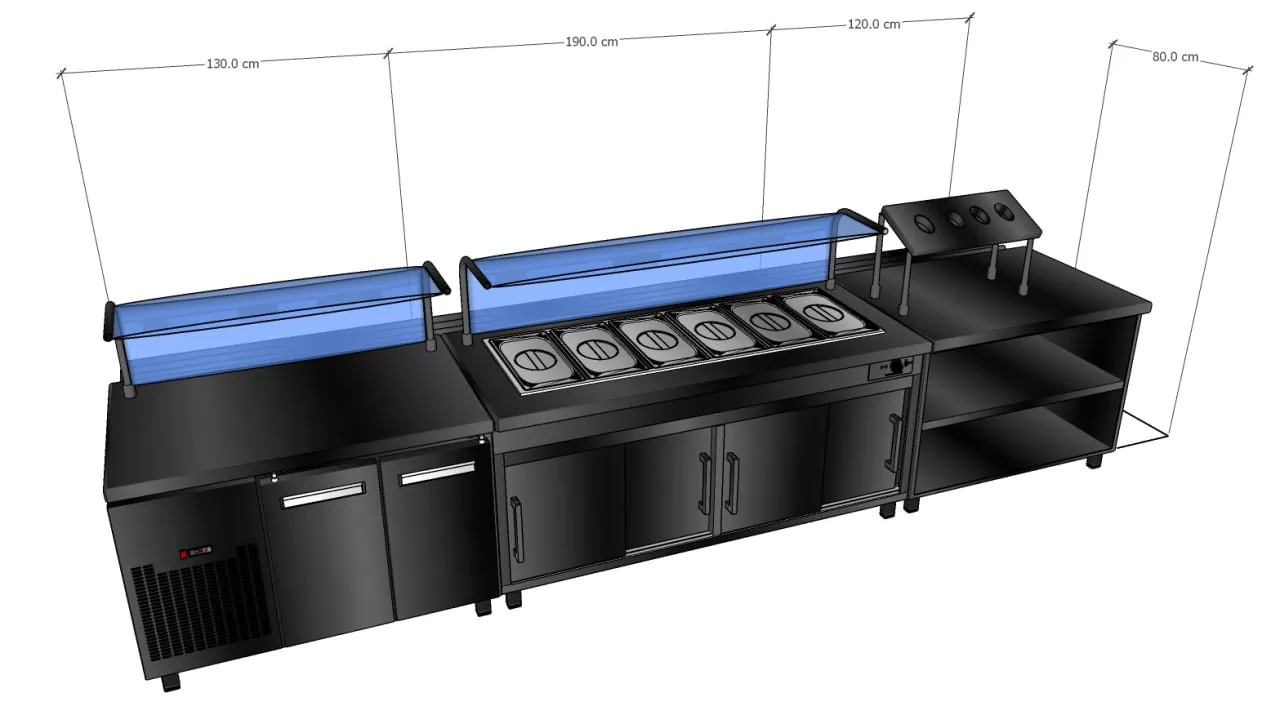همچنین، استفاده از مصالح و تجهیزات مطابق با استاندارد NSF و FDA برای سطوح تماس مستقیم با مواد غذایی، تضمینکننده بهداشت و سلامت محیط کاری است.