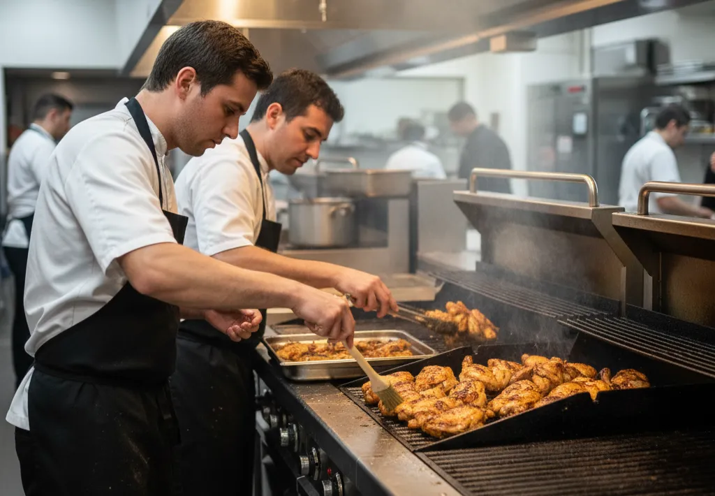 در حوزه تجهیزات آشپزخانه صنعتی، ظرفیت پخت همزمان ۶۰ تا ۴۰۰ سیخ با ردیفهای قابل تنظیم ارتفاع، امکان پخت انواع کباب از جوجه تا کوبیده را فراهم میآورد. کنترل شعله مستقل برای هر مشعل، تنظیم دقیق حرارت بر اساس ضخامت گوشت را ممکن میسازد. سینی جمعآوری چربی با شیب ۵ درجه و دریچه تخلیه، بهداشت را در شیفتهای طولانی حفظ میکند.