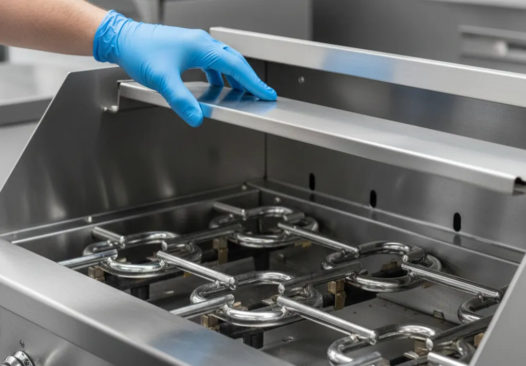 تمیزکاری روزانه فقط ۸–۱۰ دقیقه طول میکشد؛ شیشه و سینی جدا میشوند و در ماشین ظرفشویی صنعتی شسته میشوند. هر ۶ ماه یکبار لامپها و المنتها را از گرد و غبار پاک کنید و اتصالات را چک کنید.
